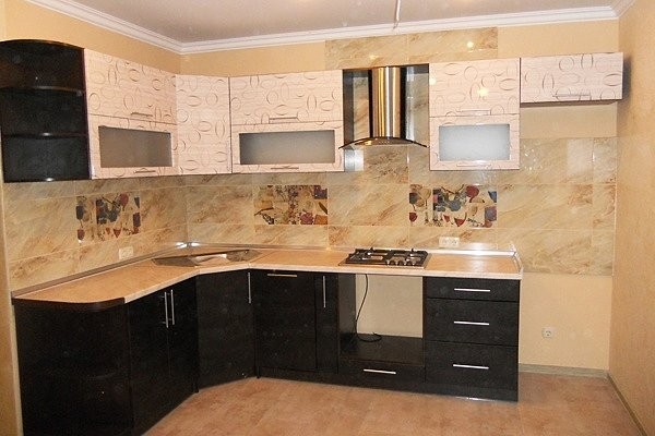 кухня пленочный МДФ черная бежевая с фотопечатью
